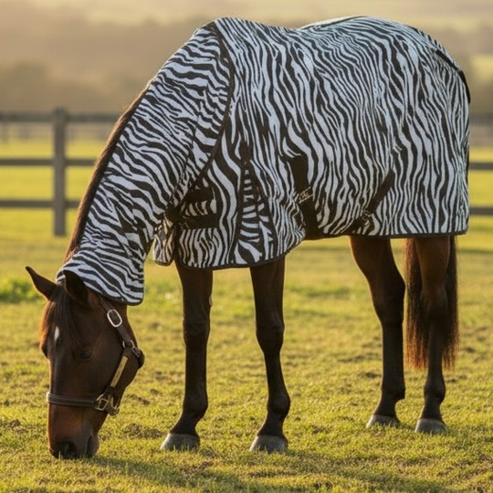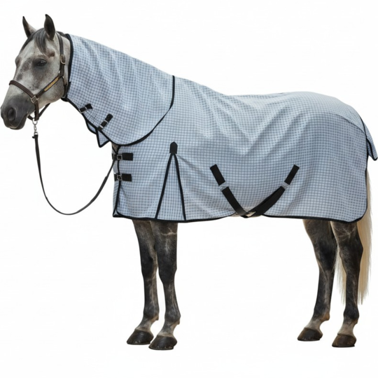 Our fly sheets offer a fantastic tight weave that will keeps your horse bug free and comfortable in Summer. Our rugs have a fixed neck piece, double chest and belly straps as well as New Zealand (back leg) straps and a tail flap.